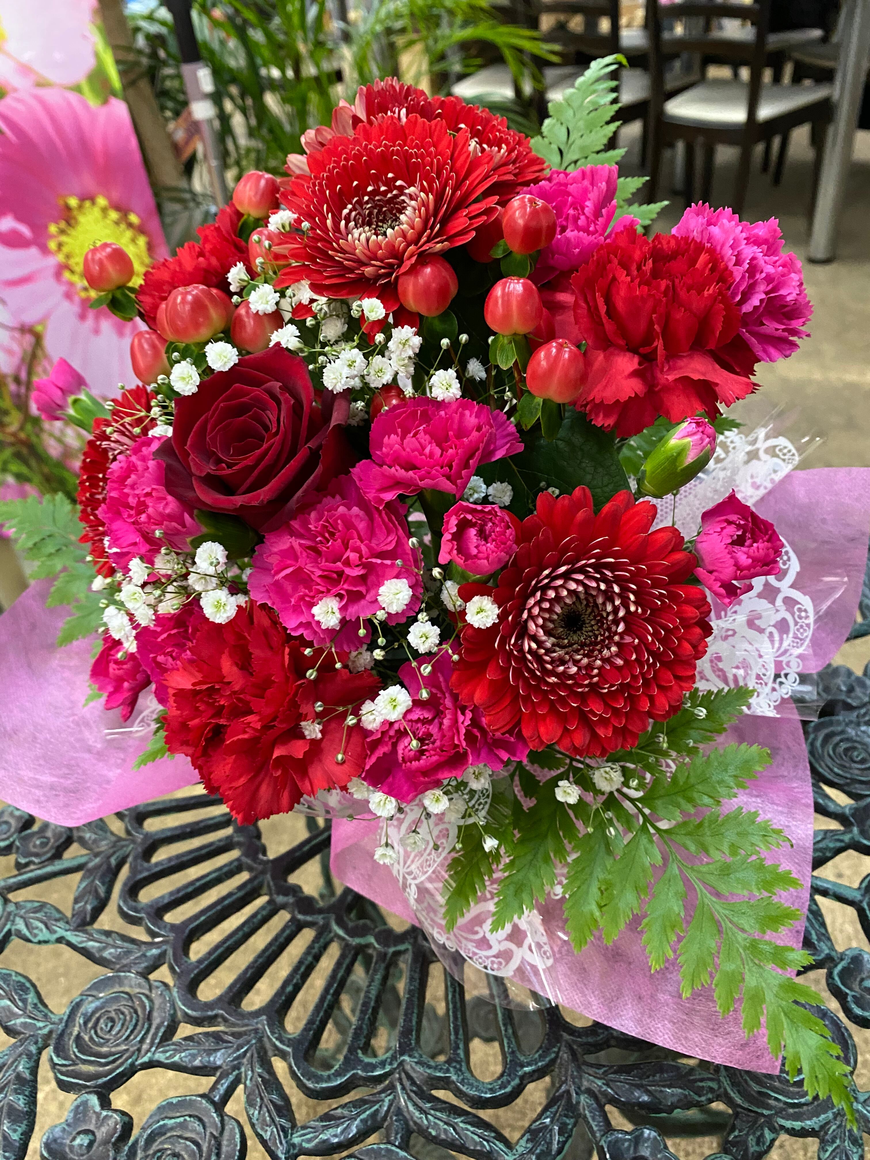 メイン:バラ、ガーベラ、カーネーション、スプレーカーネーション、ヒペリカム